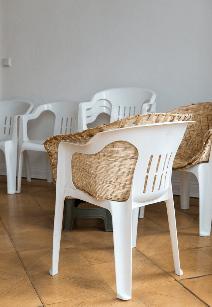 Hand woven cane and Monobloc chair